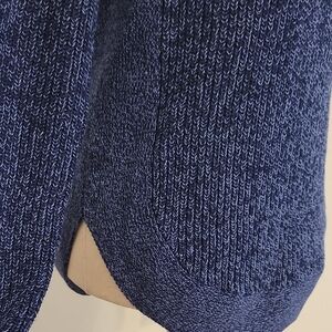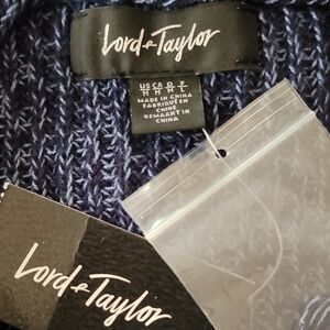 This Lord & Taylor sweater features a classic crew neck design in a rich blue hue, enhanced by ribbed cuffs and neckline. Crafted from a medium-weight knit, it offers a subtle marled appearance with lighter blue threading, making it a versatile choice for casual or semi-casual wear.