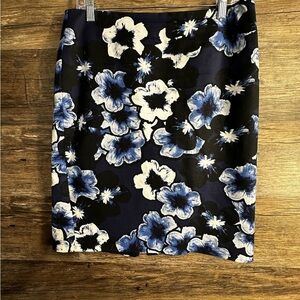 Lord & Taylor Blue and White Floral Pencil Skirt