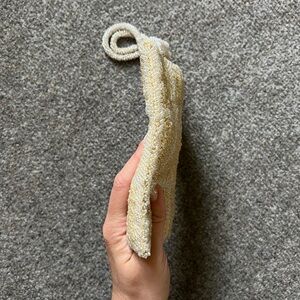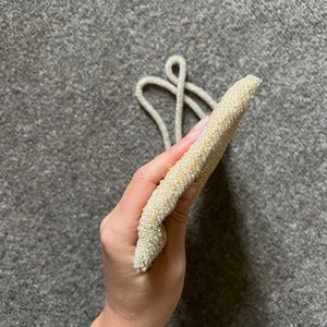 In excellent pre loved condition. It has the same exact design on both sides. I don’t believe there are any missing beads and it is in pristine condition but it’s a very delicate bag since it’s fully covered in beads including the strap so it’s possible there are some loose ones or missing ones even though I didn’t notice any when I inspected it while taking photos.