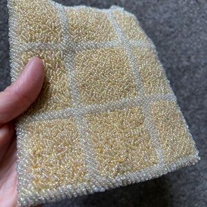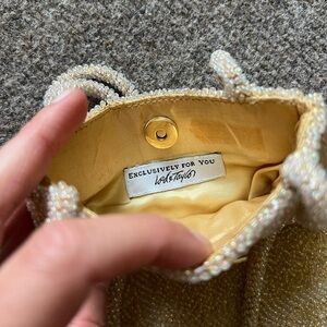 Lord & Taylor Butter Yellow Cream Beaded Mini Purse Hand Bag Magnetic Snap Close