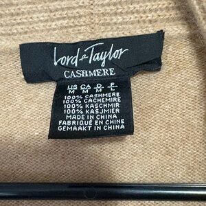 Luxurious and timeless Lord & Taylor 100% Cashmere cardigan in a beautiful neutral camel/tan color.