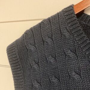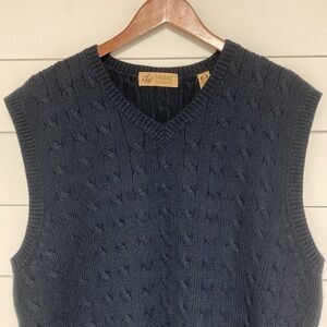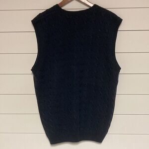 Size large Lord & Taylor Casual Classics sweater vest. Navy blue. 100% cotton. Cable knit. V-neck. Ribbed trim around the neckline, arms & hem.