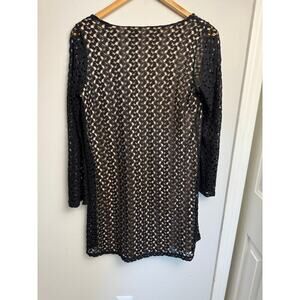 Lord & Taylor Design Lab Dress Size S/P Black Crochet Overlay Tan Lining