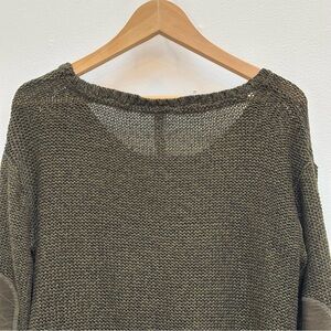 Lord & Taylor Design Lab Marled Knit Elbow Patch Sweater Academia Olive Green L