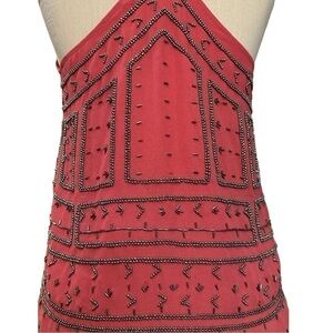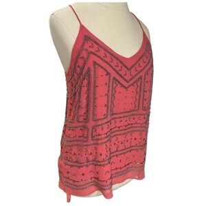 Lord & Taylor Dex Beaded Sheer Lined Boho Chic Cami Coral Racer Back Size XS