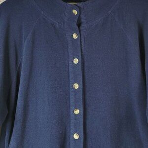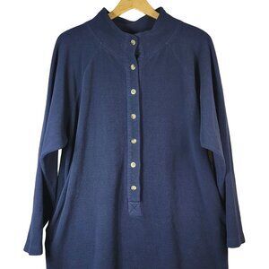 Lord & Taylor Fleece Robe Nightgown Blue Medium Buttons Long Sleeve Slit Modest