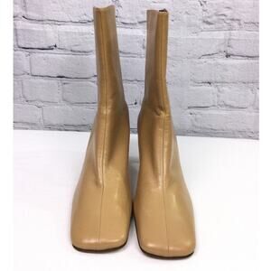 Lord & Taylor Mare Square Toe Retro Camel Chic Soft Leather Vintage Midcalf Stacked Heel Classic Sophisticated Boot Women's Size 9M