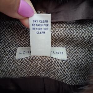 Lord & Taylor NWT Tweed Wool Silk Pant Suit Detachable Faux Fur Collor Tan SZ-16