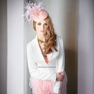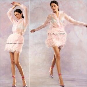 Lord & Taylor soft baby pink wispy feather mini skirt is perfect for special parties paired with heels and a velvet bodysuit or silk blouse. Bonus, there is a soft stretchy waistband for added comfort to dance the night away! Size large but could fit a range of sizes with waistband stretch. See photos for measurements. Gorgeous skirt!