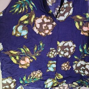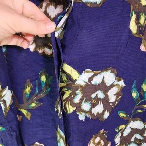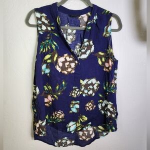 Lord And Taylor Navy Floral Button Up Blouse Tank Size Large