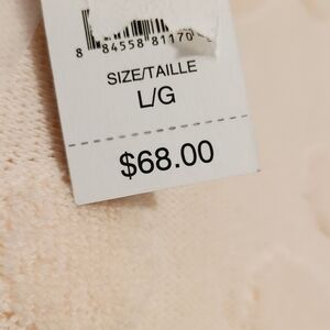 Women's light peach polka dot crewneck sweater by Lord & Taylor, size large. 100% cotton. The polka dots are raised. Sweater is new with tags, no flaws.