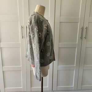Lord & Taylor Petite Large Vintage Gray Floral Button-Up Wool Cardigan