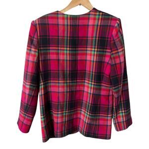 Lord & Taylor Pink Plaid Blazer with Gold Accents