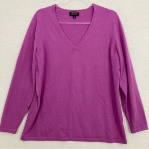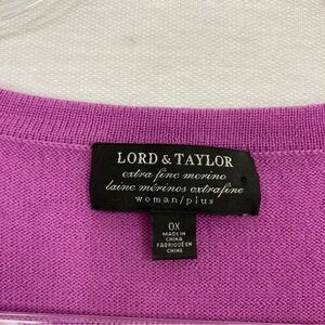 Lord & Taylor Pink Purple V Neck Extra Fine Merino Wool Light Sweater size 0X