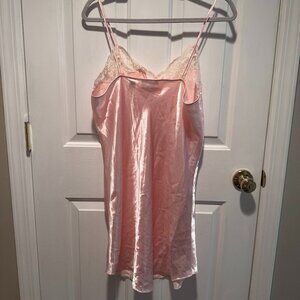 Lord & Taylor Pink Silk with White Lace Sleep Dress Teddy - Size Large