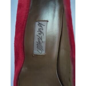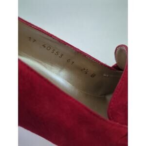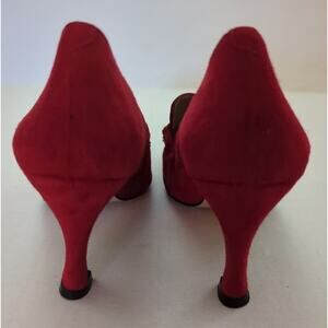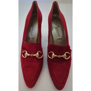 Lord & Taylor Red Velvet Leather 3" heels Gold Buckle Accents Women's Size 7.5