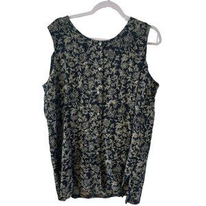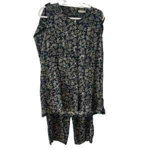 Lord & Taylor Sleeveless top & Pants Set Black Floral L Rayon Button Front Tunic