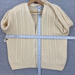 Lord & Taylor Sweater Womens Medium Beige Cable Rib Knit Full Zip V Neck Classi