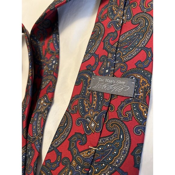 The Lord & Taylor The Mans Shop 100% Silk Mens Neck Tie in Paisley Red Floral is a classic and stylish accessory for men. Made from luxurious silk, this vintage piece features a classic paisley pattern in a striking red color.