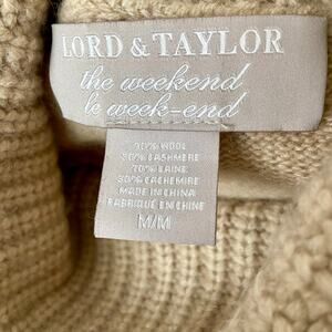 Beautiful tan wool/cashmere blend “the weekend” chunky turtleneck sweater by Lord & Taylor. Great preowned condition. Size medium. Measurements in photos.