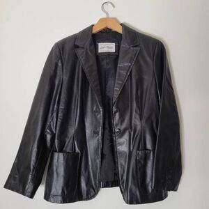 Lord & Taylor Vintage Genuine Leather Blazer Jacket Black American Petite PM