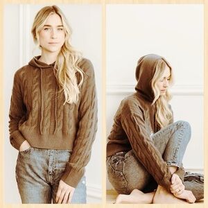 Scout Cable Knit Hoodie Made with 100% cashmere and featuring a cable knit design, this W.Cashmere hoodie pullover exudes both quality and style. Perfect for staying warm and comfortable in colder weather, it's a must-have for any fashion-forward individual. Embrace the luxurious feel of cashmere and elevate your wardrobe with this cozy and chic piece. Woman’s size M Sand color NWT