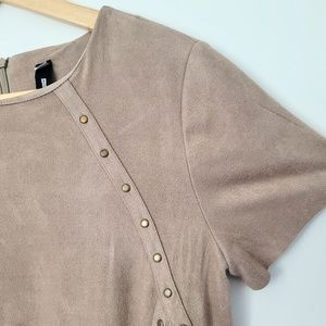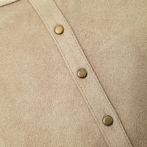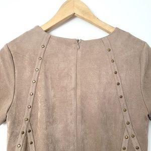 Lord & Taylor Western Shift Dress Faux Suede Tan Gold Studs Short Sleeve Small