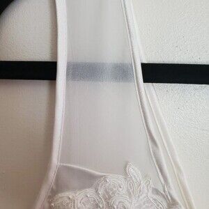 Beautfiul beaded and lace detailing at the front with sheer shoulders and a small bow at the back