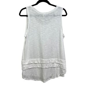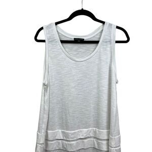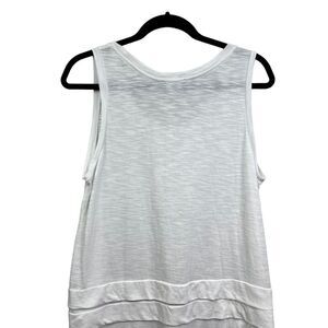 Lord & Taylor Womans Tank Top Stretch Semi Sheer Tiered Hem White Size L