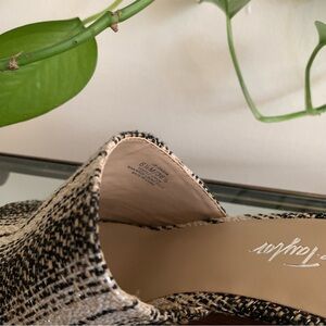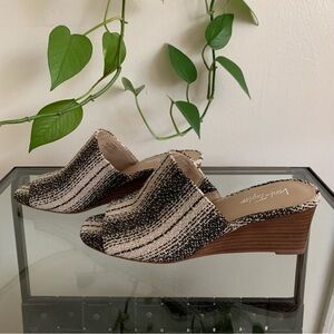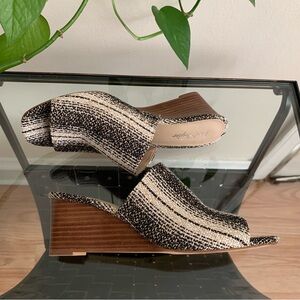 Lord & Taylor Women's Black Cream Striped Fabric Slides Wedge Mules Size 6.5