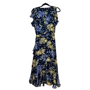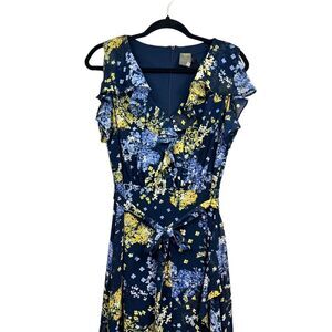 Lord & Taylor Womens Dress Floral Ruffled V Neck Tie Waist High Low Hem Blue 10