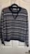Stylish black/white/gray striped sweater perfect for any occasion. Comfortable and versatile for everyday wear.