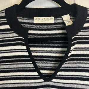 🖤”Lord & Taylor” Women’s Two-Ply 100% Cashmere Black/White/Gray Striped Sweater🩶