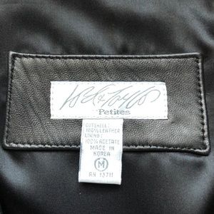 Lord& Taylor Black button up Leather Vest. 2 front pockets that are 3+” deep. Back adjusts to your waistline. Labeling says “Petite” but honestly fits like regular Medium . No flaws.