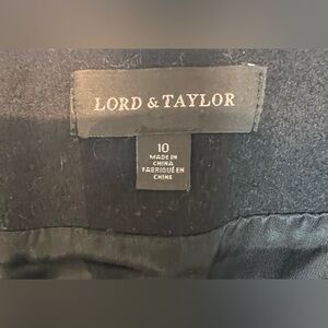 Women’s Lord & Taylor Classic style, black, wool pencil skirt. Back slit. Back zipped, hook-eye closure. Fully, sateen lined. Very good, used condition. Classic look. Gorgeous skirt.