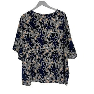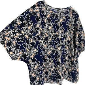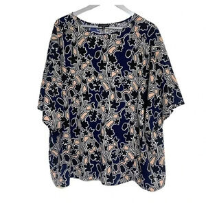 Lord & Taylor woman 2X black, pink, blue and white print dolman sleeve top