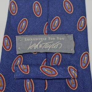 Lord & Taylor Blue Abstract Geometric Jacquard Print Short Wide Silk Tie