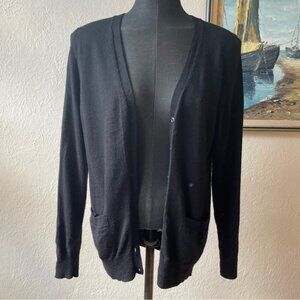 Lord and Taylor 100% merino wool black button up cardigan size medium