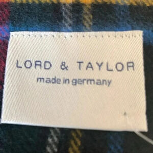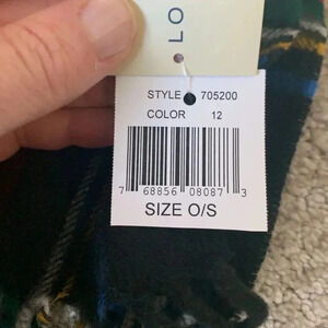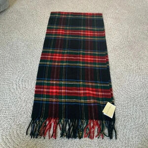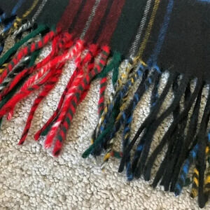 Black red, green, yellow and blue plaid print with braided fringe new with tags