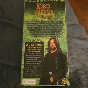 Explore Middle-earth with the Lord of the Rings Aragorn action figure. This special edition collector's item features a detailed design with a black outfit. Perfect for fans and collectors alike.