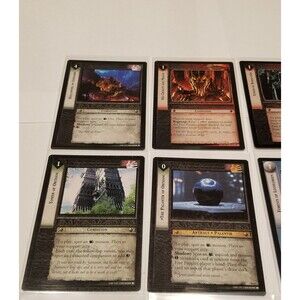 This is a Lot of 12 rare cards from the "Realms of Elf Lords" set of The Lord of the Rings Trading Card Game (TCG). The cards feature characters like Sharku, Gandalf, Skinbark, and Arwen with the powerful Narya. The cards are in excellent condition and are in English. These vintage cards, manufactured by Decipher, are part of the Ents of Fangorn expansion set, suitable for ages 6 and up. The finish of the cards is regular, making them a valuable addition to any collector's collection.