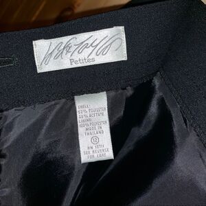 Lord & Taylor navy blue fully lined pencil skirt size 12P. Tailored fit. Back zipper with one button closure. Back hem slit. Runs small. Polyester/ acetate. Dry clean. Length 24.5 inches and waist 14 inches flat across.