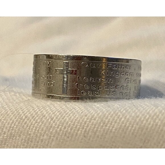 Lord’s Prayer with Cross Stainless Steel Band Ring ED FORCE Size 6 Christ Bible