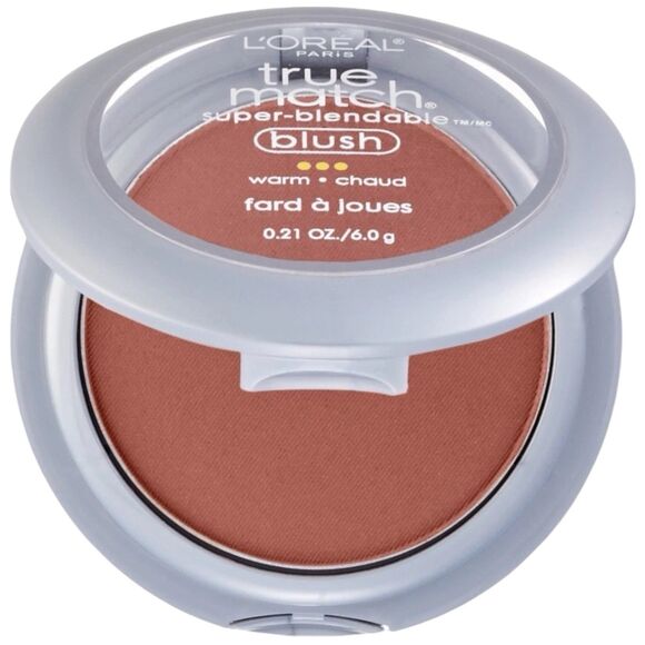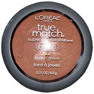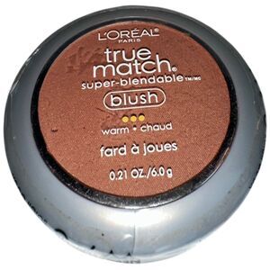 LOréal True Match Blush in shade W78 Soft Sun. This warm-toned bronze blush is part of the discontinued True Match line and is popular for achieving a natural sunlit glow. Super blendable formula with a smooth finish. Compact includes mirror and brush.