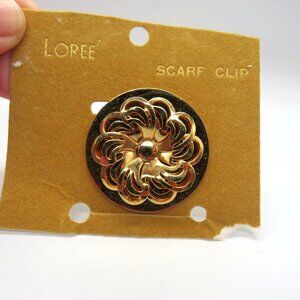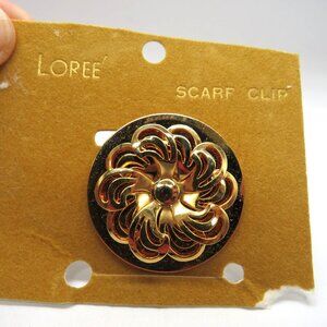 Loree Scarf Clip Gold Tone Floral Swirl 3D Design Vintage New
