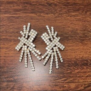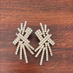 These stunning Loren Hope earrings showcase a radiant burst design in luxurious gold, embellished with shimmering white stones. The dynamic strands radiate from a central point, creating an eye-catching and elegant accessory perfect for any occasion.