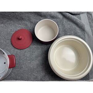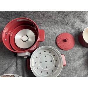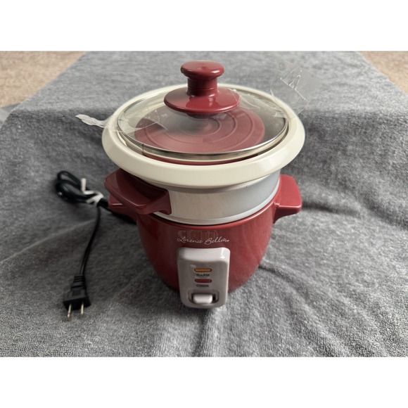 For sale is a Lorena Bella Mini Multi-Cooker in excellent used condition (EUC). This compact and versatile appliance is perfect for individuals, small apartments, or anyone looking for a convenient way to prepare small meals. It appears to have been used very little, if at all, as some original protective plastic is still visible on the lid assembly (see photos).