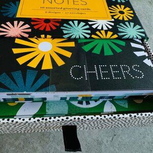 - 16 tent-folded cards, 17 colored envelopes, 6 designs
