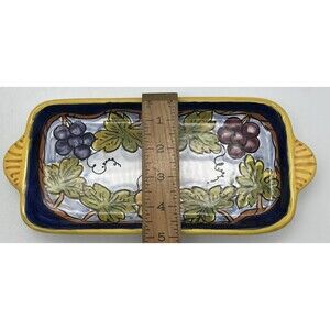 Lorenzaccio Deruta Hand-painted Grape Vine Tray Multicolor Signed