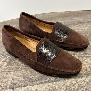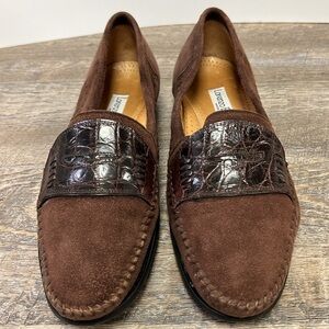 Lorenzo Banfi 671 Genuine Crocodile Strap Suede Penny Loafers Size 11